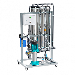 Промышленный обратный осмос RO-1000 оснащен комплексом контрольно-измерительных приборов, включающих три манометра и ротаметры. Это позволяет осуществлять постоянный мониторинг рабочих параметров. Интегрированный насос дает равномерную циркуляцию очищаемого потока.